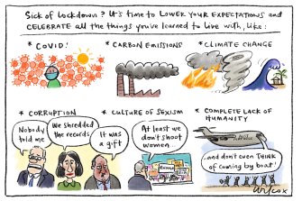 It is pretty easy to discern what Uhlmannâs alternative looks like. Just look to our north, in Australia and overseas. With freedoms come responsibilities. We are social animals and we need to interact; we just need to lower the risk so that the interaction does not kill us.